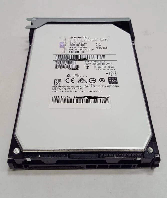 IBM 01LJ065 01LK203 01LK205 8TB 7.2K 12GB SAS 3.5” HDD w/Tray